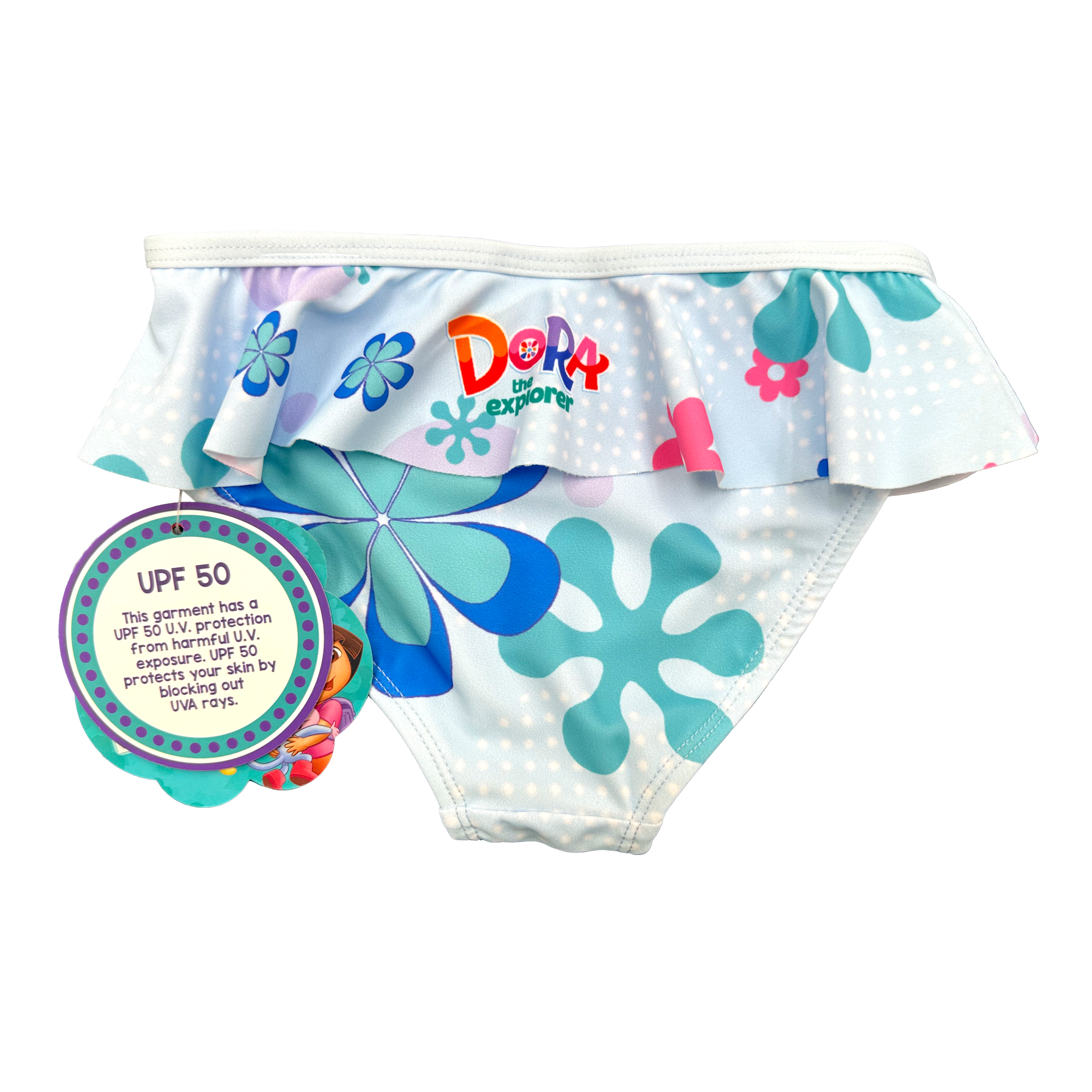 Nickelodeon Dora The Explorer bikini bottom is designed for comfort and fun! With a soft polyester-spandex blend, it’s perfect for sunny adventures.